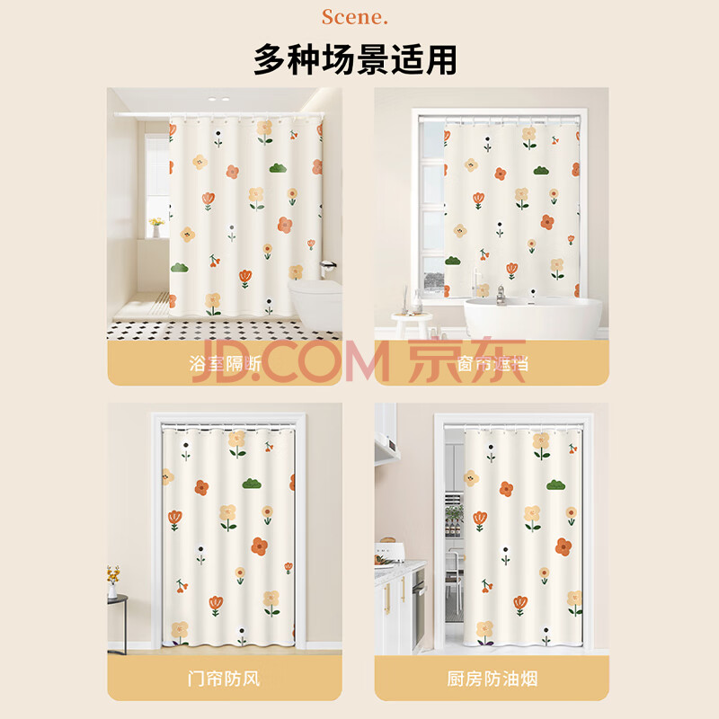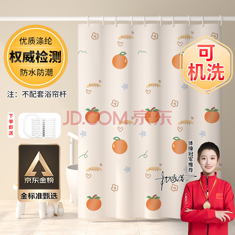 商品相册:访客 浴帘 优质涤纶加厚免打孔浴室防水隔断帘 橘子款1.8-2米带挂环第