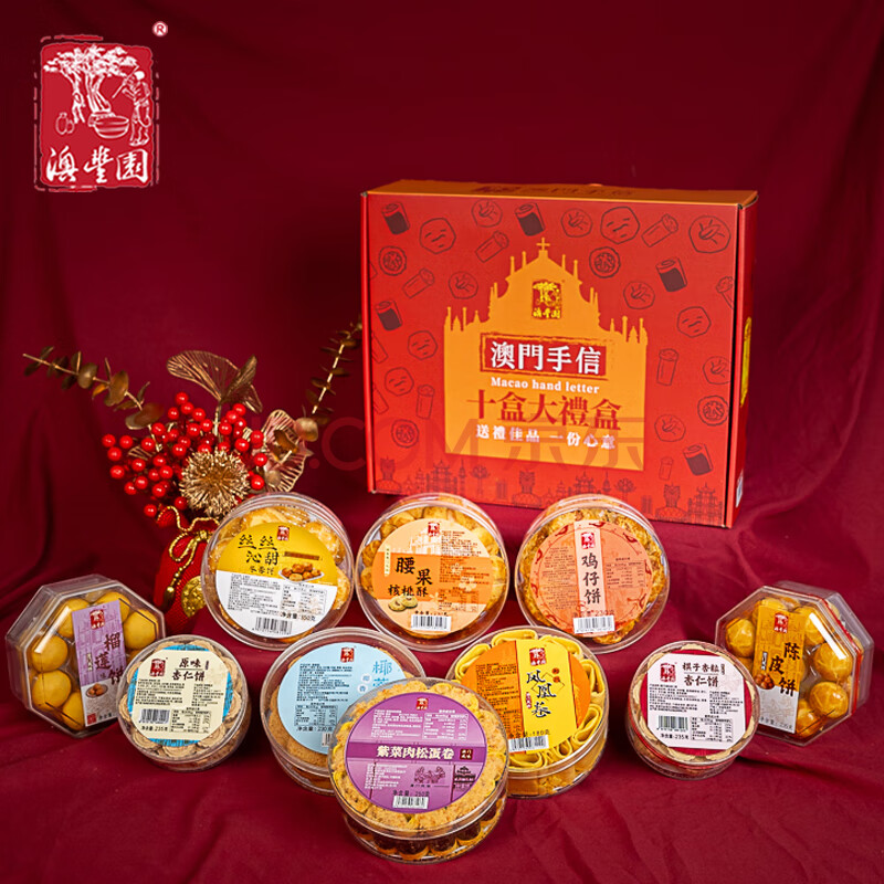 商品相册:澳丰园 十盒饼干糕点礼盒 广东广州澳门手信特产零食礼包送礼团购2410g第