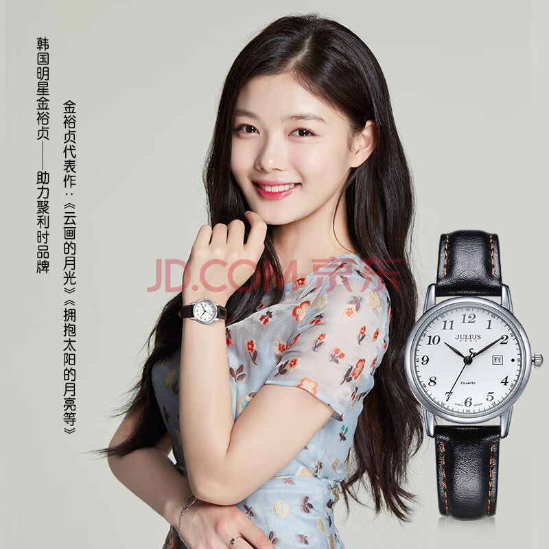 商品相册:聚利时(Julius)手表女韩版时尚英伦复古日历考试学生石英女士手表黑色JA-508LA第