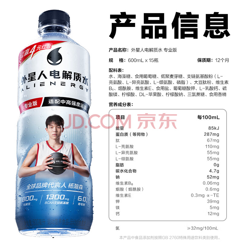 商品相册:外星人电解质水 运动专业系列PRO 添加BCAA 600mL*15瓶第