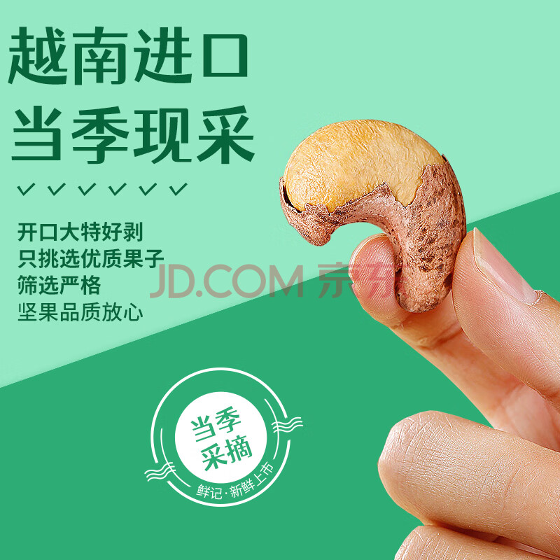 商品相册:鲜记 紫衣腰果500g 每日坚果炒货 孕妇坚果 带皮大腰果仁休闲零食第