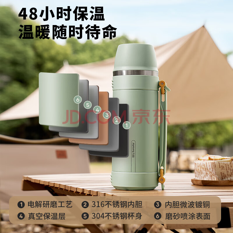 商品相册:九阳(Joyoung)保温壶316L不锈钢大容量保温瓶保温水壶可拎可背户外旅行壶第