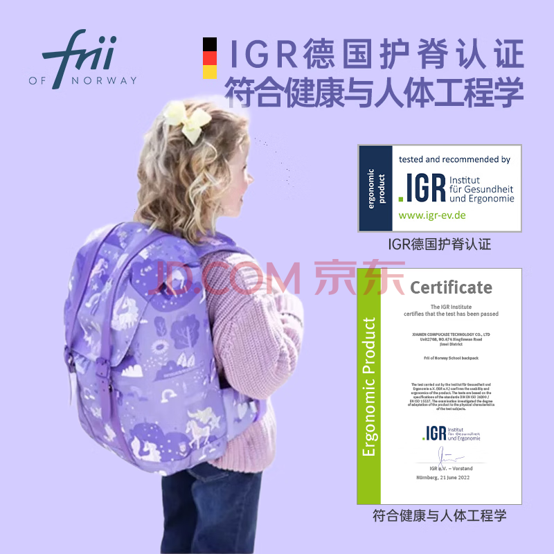 商品相册:FRII OF NORWAY书包小学生男孩挪威护脊减负儿童背包轻便减压双肩包1-4年级22L第1张/共7