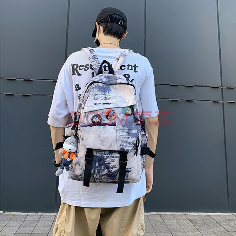 商品相册:viney书包男女ins初中高中大学生简约背包潮流大容量双肩包蓝色第