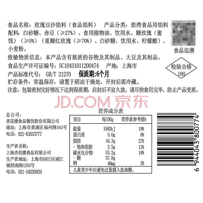 商品相册:杏花楼玫瑰豆沙馅糕点心馅料烘焙材料包子汤圆八宝饭上海食材500g第