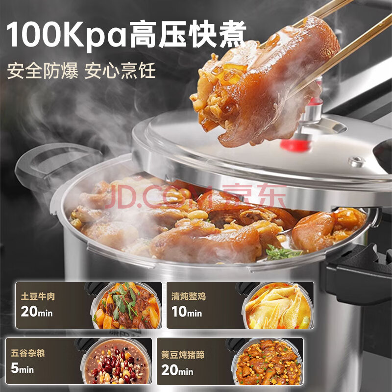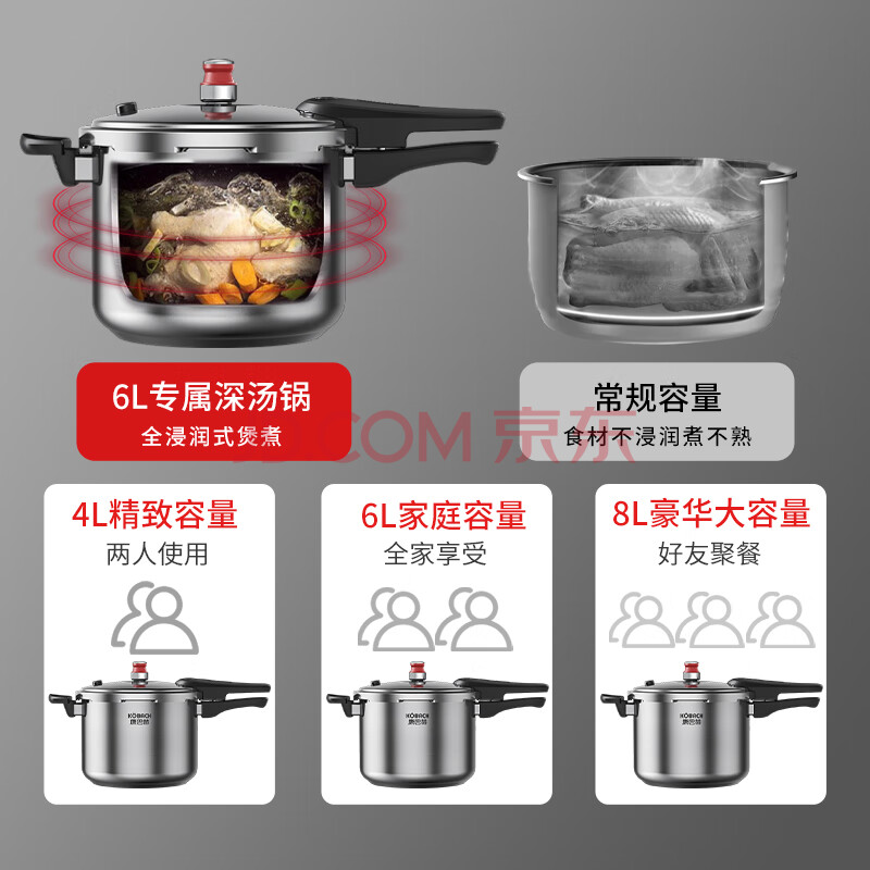 商品相册:康巴赫高压锅304不锈钢压力锅防爆快煮家用大容量8L电磁炉燃气灶通用第