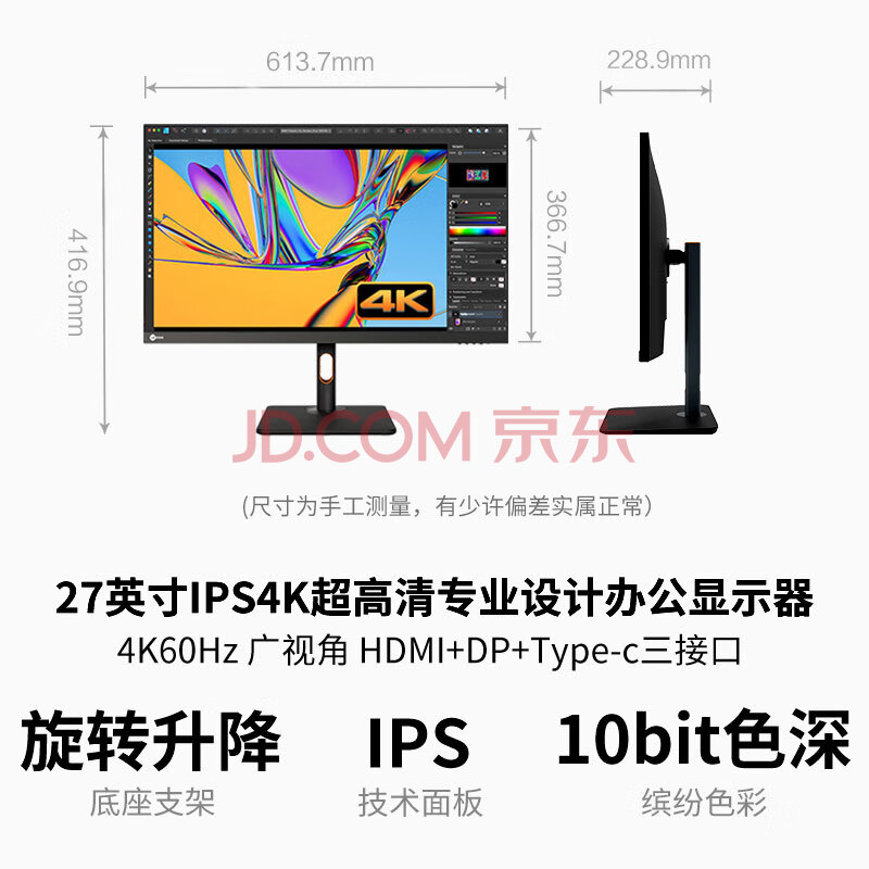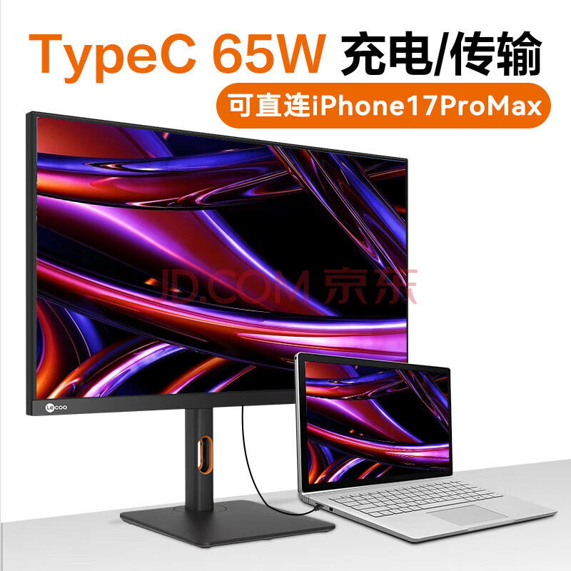 商品相册:来酷联想27英寸4K超清显示器HDR专业级色准400亮度10BitType-C旋转升降适配Macmini龙虾电脑屏M2721PL第