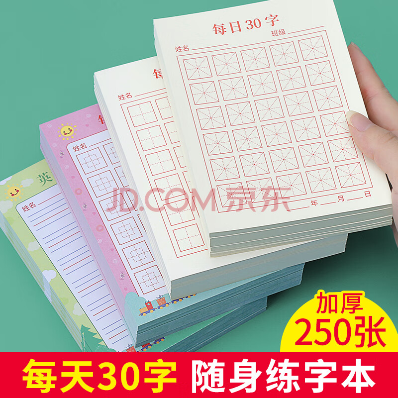 商品相册:绍泽文化 米字格硬笔书法纸每日30字作品纸古诗抄写纸小学生训练专用纸每日一练习本 彩印英语纸5本装第1张/共7