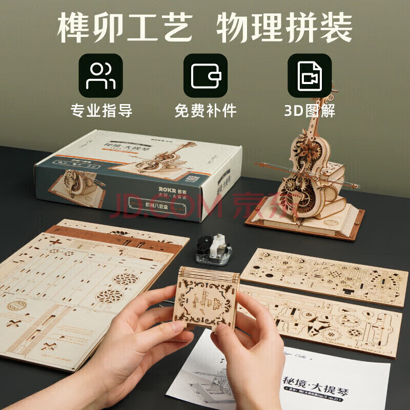 商品相册:若态若客秘境大提琴八音盒音乐盒diy手工积木拼图装玩具生日礼物女生第