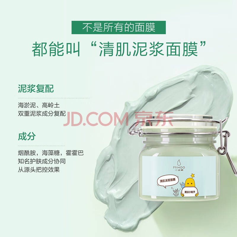 商品相册:小迷糊清肌泥浆面膜280g深层清洁涂抹面膜男女士学生护肤品第