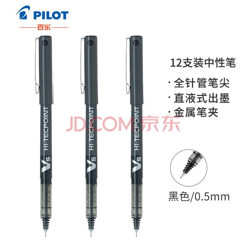 商品相册:百乐(PILOT)BX-V5 直液式走珠笔中性水笔针管水笔签字笔 黑色 0.5mm 12支装第