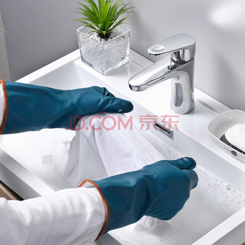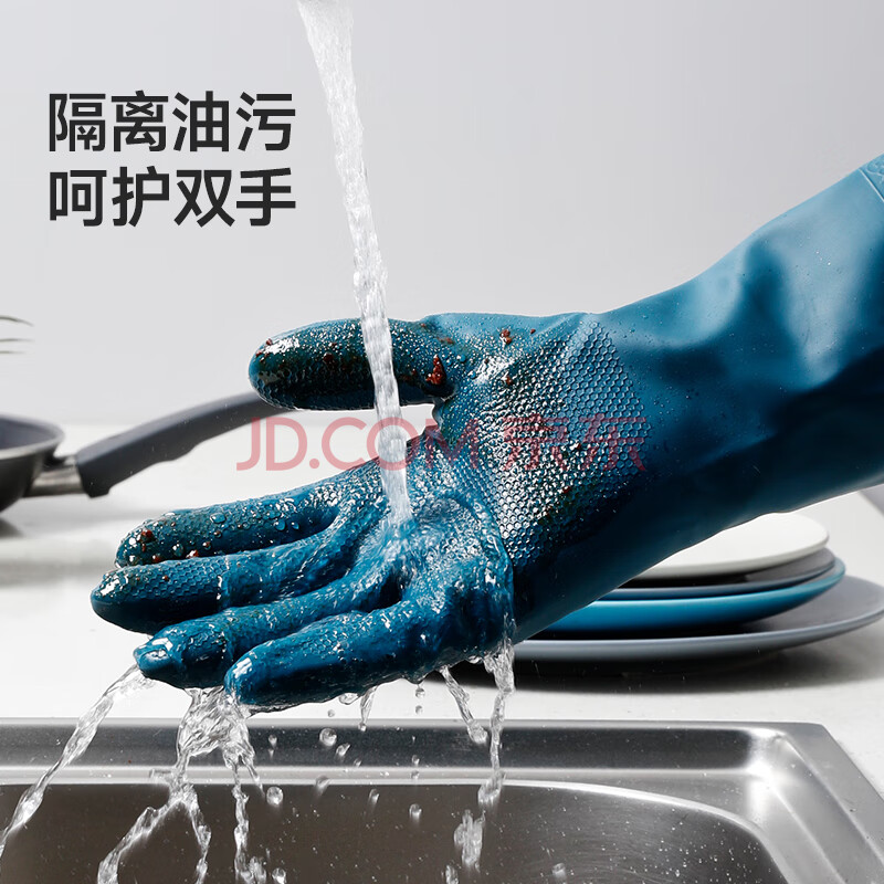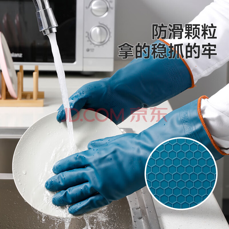 商品相册:美丽雅加绒洗碗手套1双均码加长32cm冬季保暖加厚耐磨厨房家务清洁洗衣第