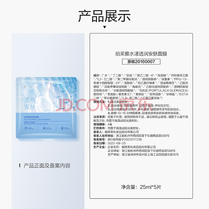 商品相册:珀莱雅面膜 水漾透润水屏障面膜5片 补水面膜女男 保湿修护第