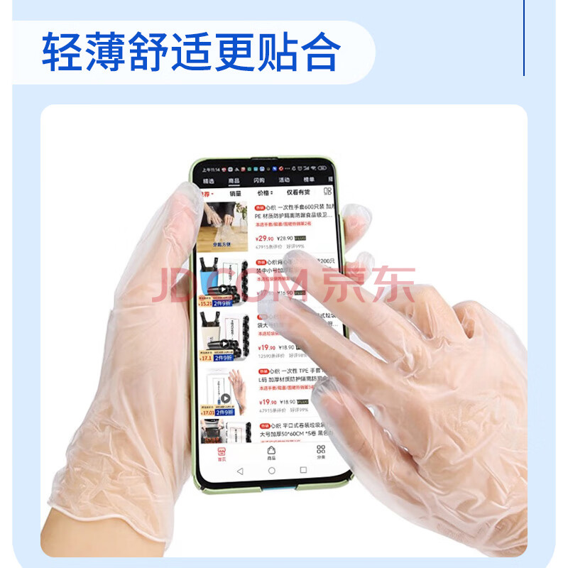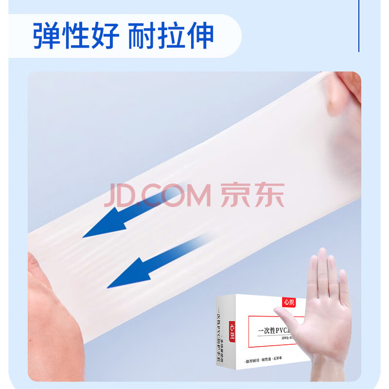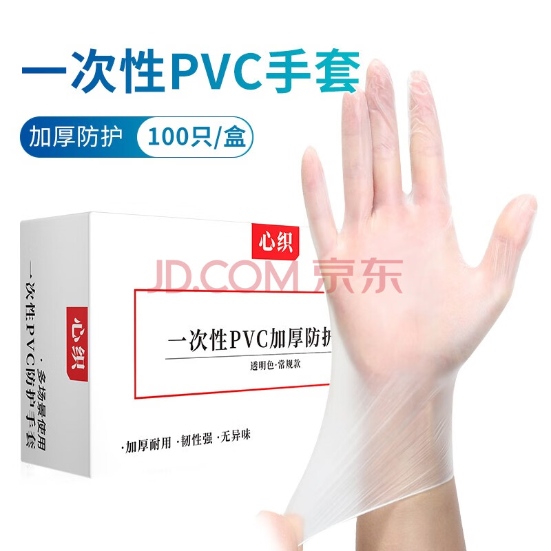 商品相册:心织 一次性PVC手套食品级100只加厚透明防护烘焙餐饮家务厨房手套L码第