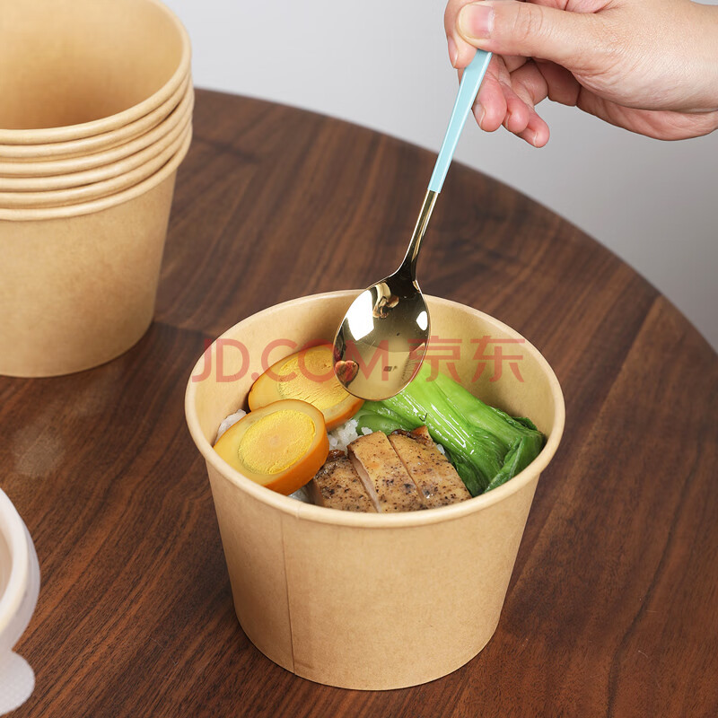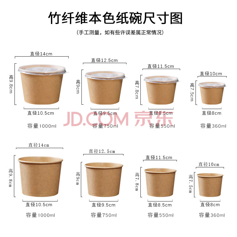 商品相册:芳草地 一次性纸碗550ML*100只 竹纤维汤碗酸辣螺丝粉打包小面碗 不带盖第1张/共8