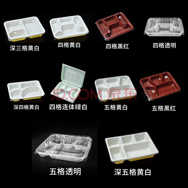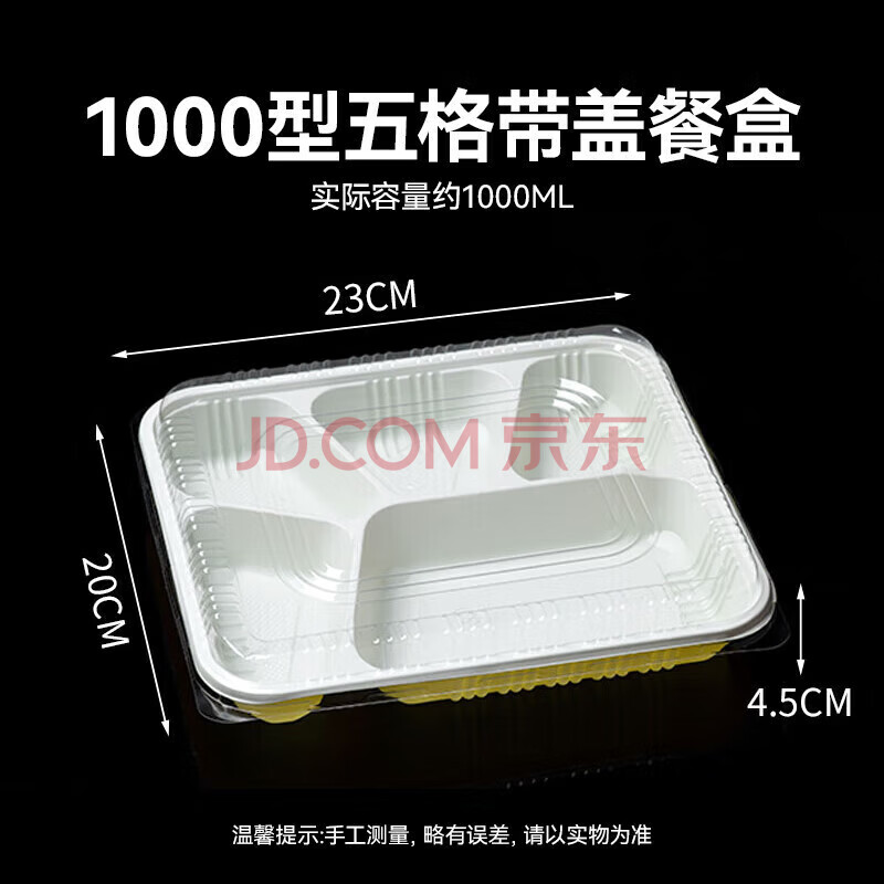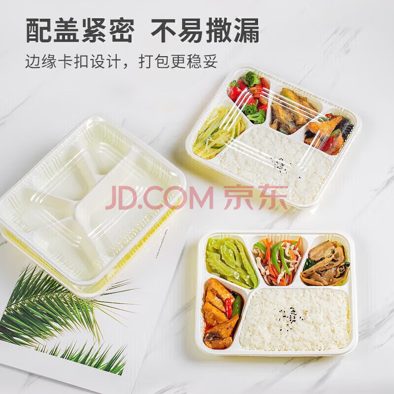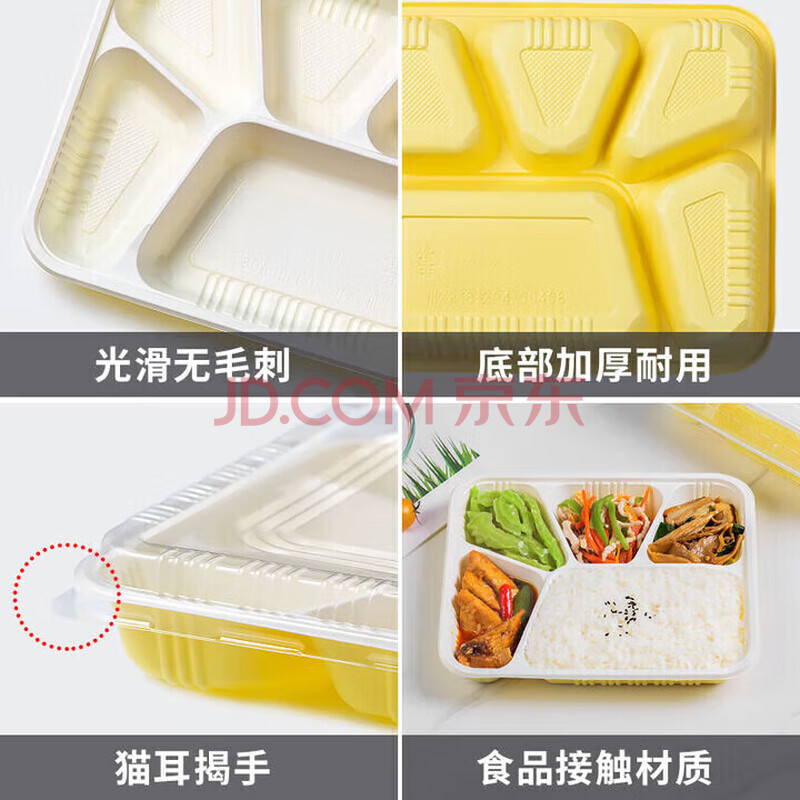 商品相册:特美居一次性饭盒分格5格打包盒外卖快餐盒带盖1000ml*100套可微波第
