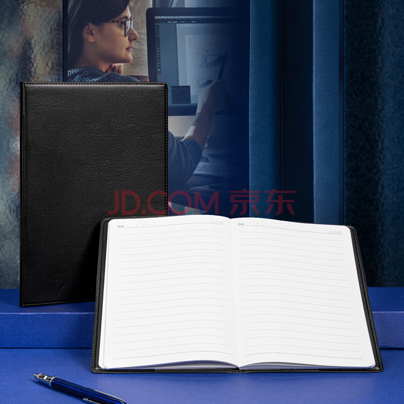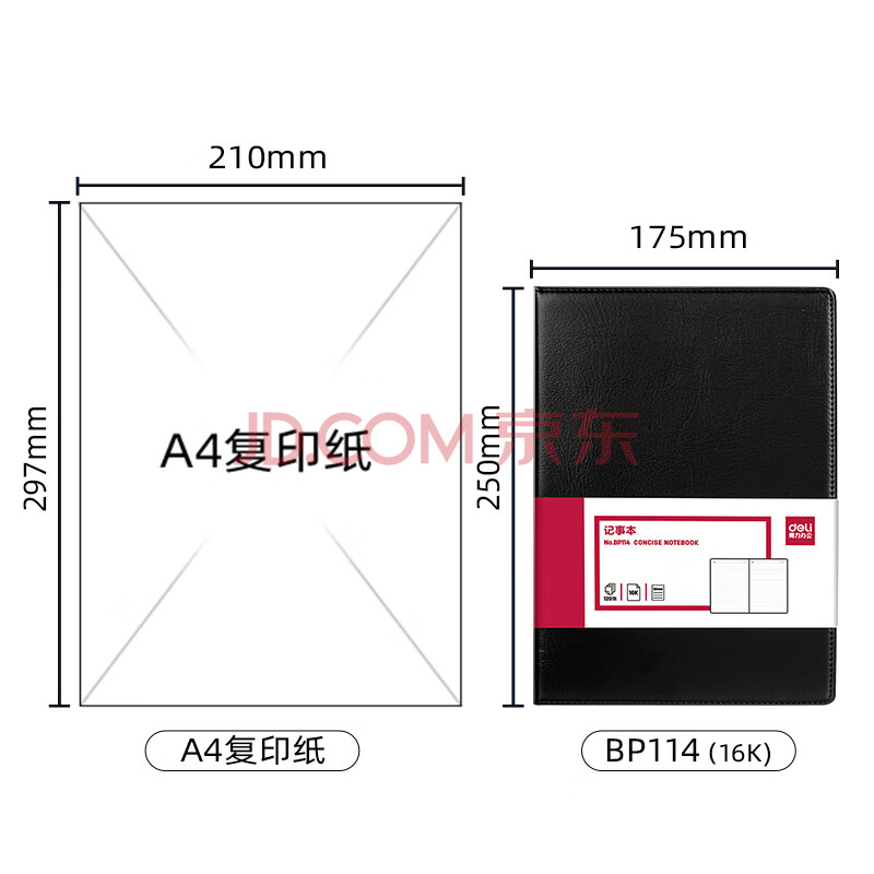 商品相册:得力(deli)(deli)16K120张大号商务经典皮面本办公用品会议记事本日记本笔记本子文具黑BP114第