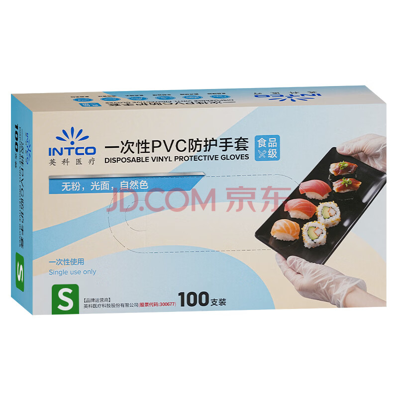 商品相册:英科医疗一次性手套PVC手套100只小码餐饮洗碗厨房美容家务防水食品级手套第