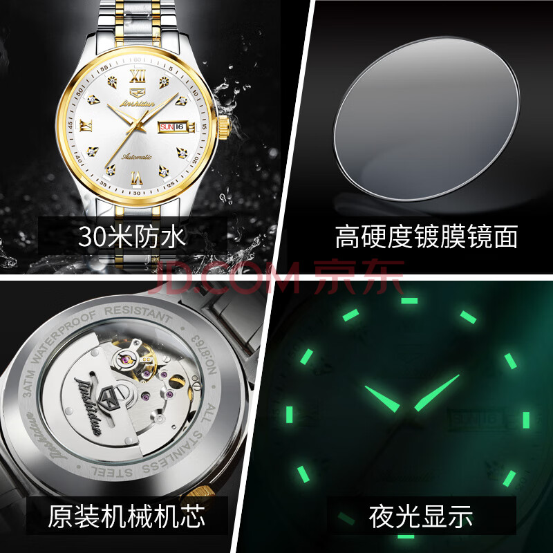 商品相册:金仕盾(JIN SHI DUN)瑞士认证品牌手表男机械表全自动夜光防水生日礼物送男友商务国表第