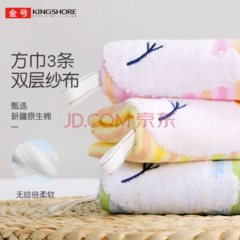 商品相册:金号A类儿童毛巾纯棉100%洗脸小毛巾洗脸帕双层无捻女士面巾3条第