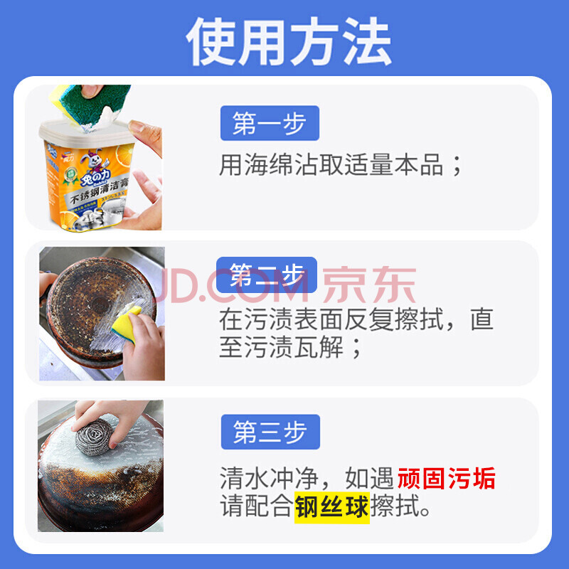 商品相册:兔力家庭清洁不锈钢清洁膏 多功能不锈钢清洁剂锅底黑垢清洁剂升级款第