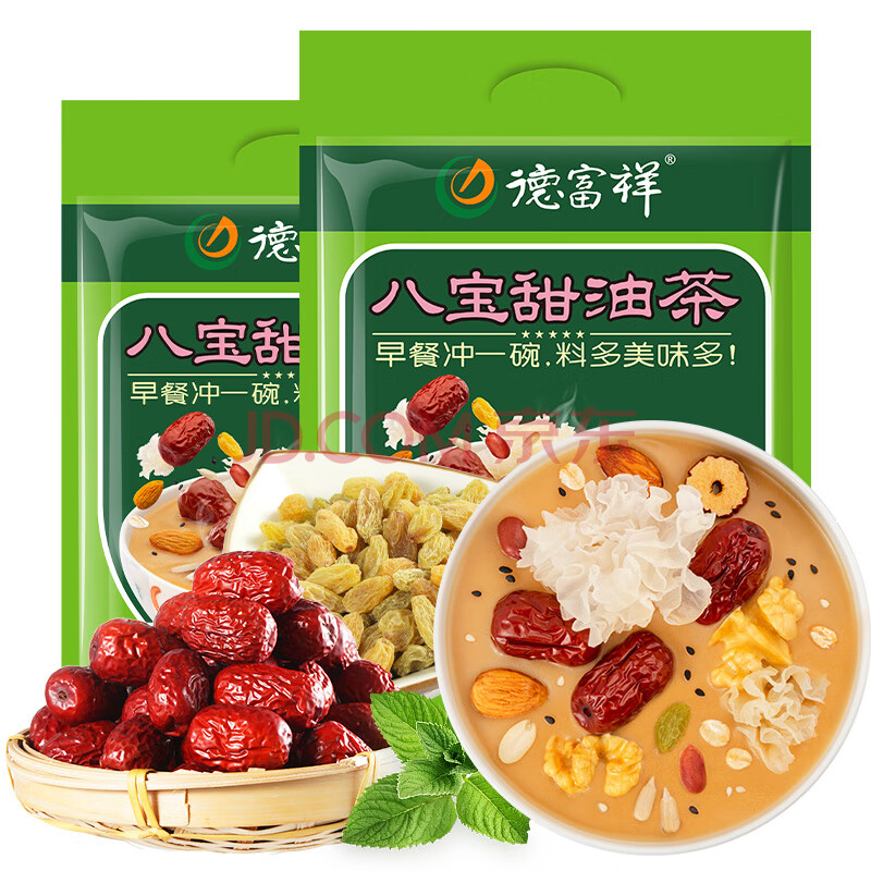 商品相册:德富祥八宝甜油茶面两连包共800g 陕西特产 八宝营养早餐代餐粉第