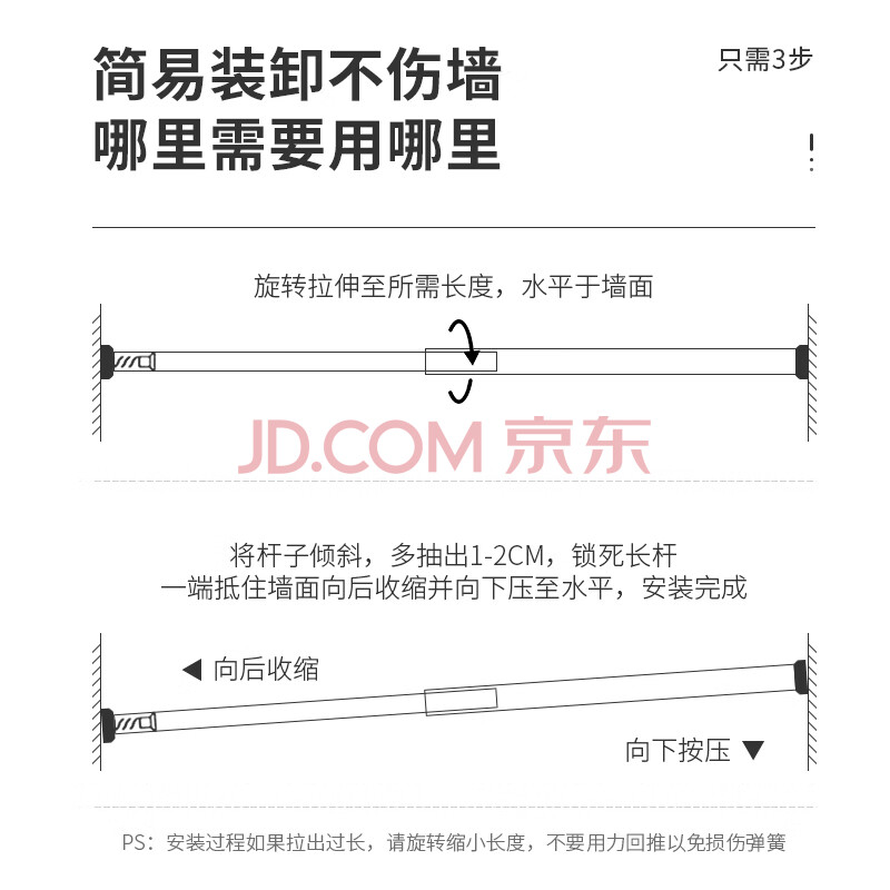 商品相册:RIDDER笍德 浴帘杆伸缩杆免打孔窗帘晾衣杆100-185cm第1张/共2