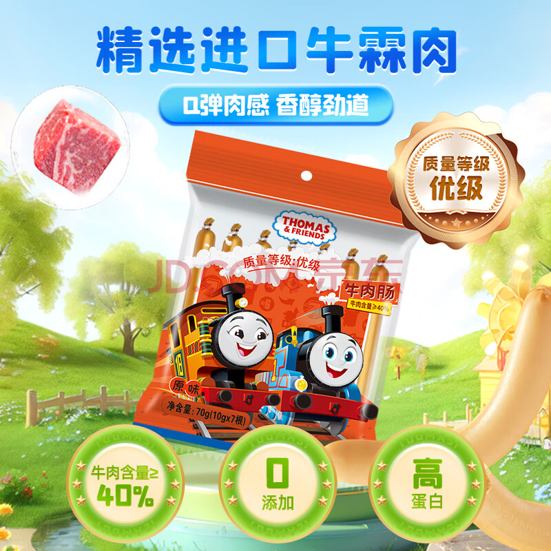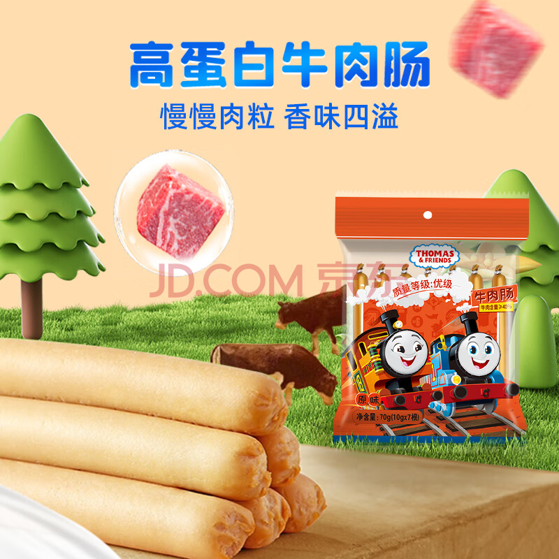 商品相册:小火车托马斯进口牛霖肉牛肉肠 开袋即食儿童早餐宝宝零食火腿肠原味70g第