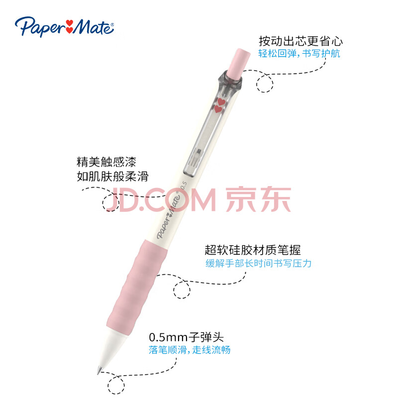 商品相册:【开学必备】缤乐美(Paper Mate)中性笔0.5mm速干高颜值按动式学生棉花糖粉色笔身G110黑色单支装第
