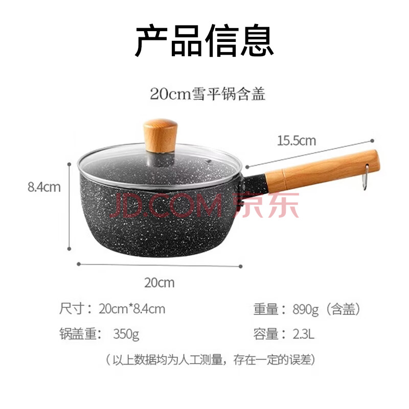商品相册:京东京造 小奶锅煮面汤锅 麦饭石色不粘锅雪平锅蒸煮辅食锅 带盖20cm第