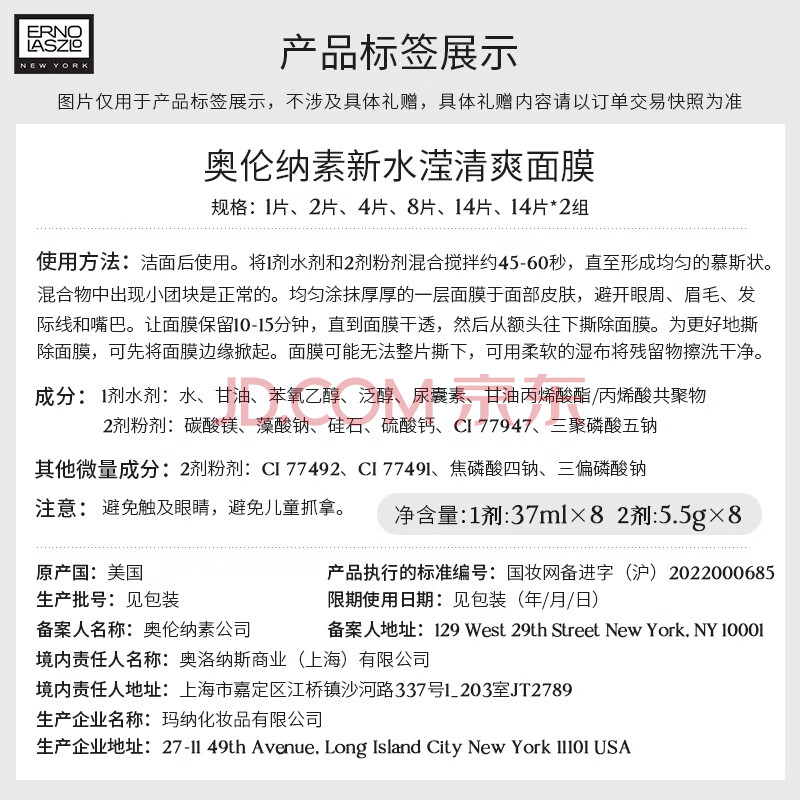 商品相册:奥伦纳素(Erno Laszlo)冰白面膜8片礼盒保湿舒缓紧致护肤品送女友女神礼物第