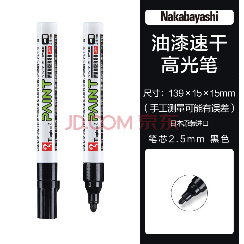 商品相册:Nakabayashi仲林油漆笔高光笔工业补漆笔1.2mm速干涂鸦笔防水不褪色油性记号笔 黑色单支 2.5mm第