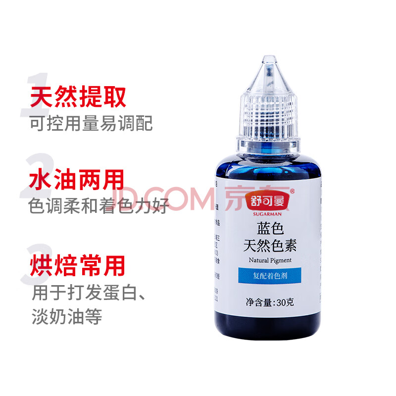 商品相册:舒可曼 蓝色天然色素30g 食用马卡龙翻糖裱花儿童玩具染色水油两用 第