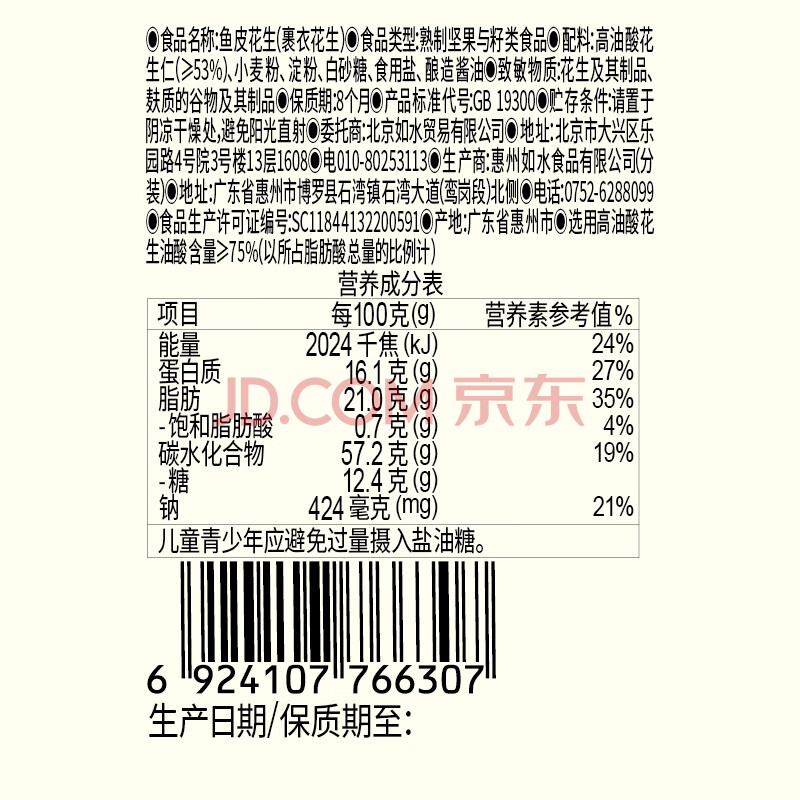 商品相册:如水 鱼皮花生豆138g/罐 经典童年怀旧网红零食 小时候的味道第