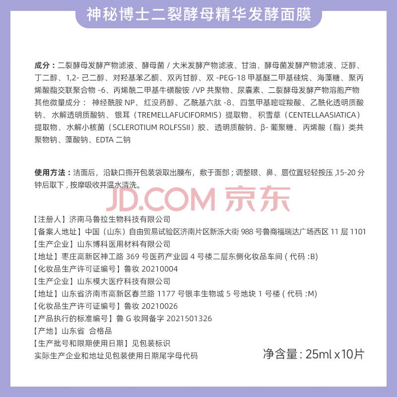商品相册:神秘博士(mystey doctor)二裂酵母精华发酵面膜 保湿抗皱紧致舒缓第
