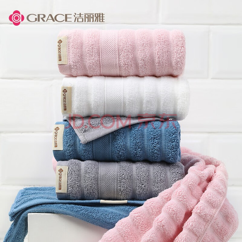 商品相册:洁丽雅(Grace)毛巾4条A类长绒棉纯棉柔软洗脸洗澡家用吸水男女情侣加厚大面巾第