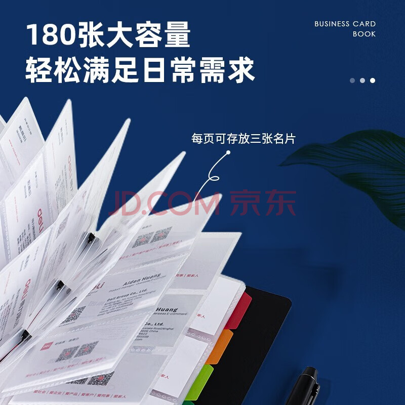 商品相册:得力 deli 名片册名片收纳本名片夹 180张 黑色 1个第