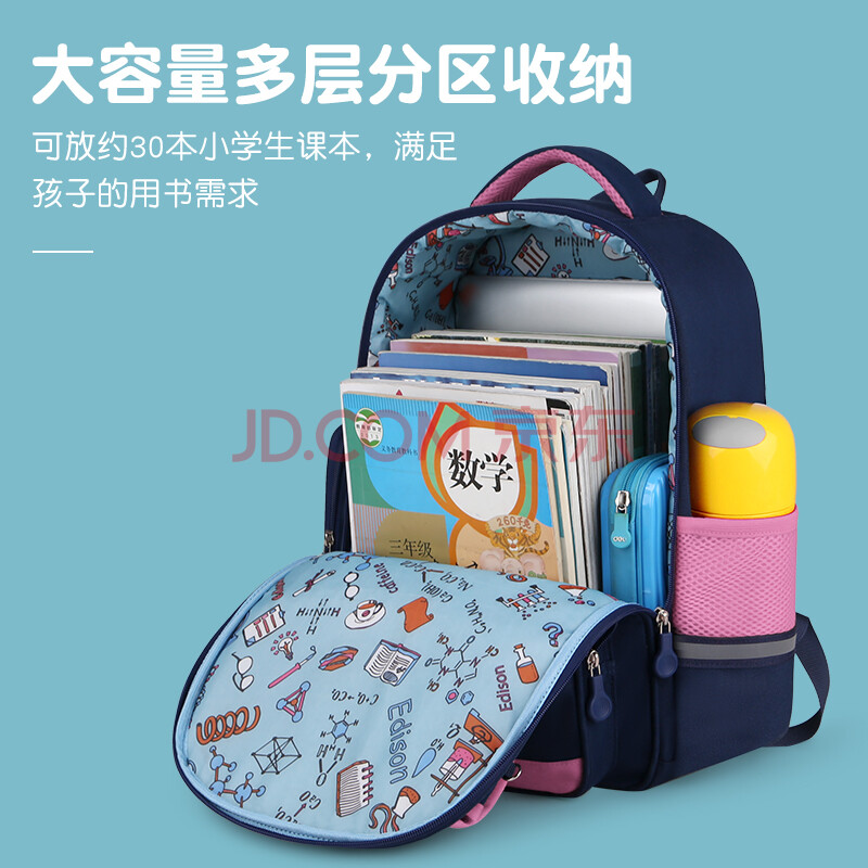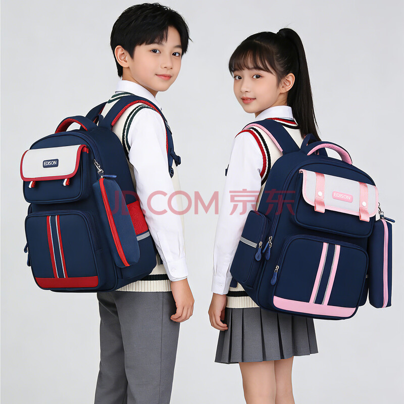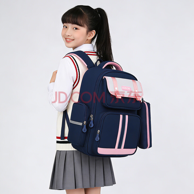 商品相册:Edison爱迪生小学生书包女护脊反光大容量防泼水防下坠儿童背包2215-1第