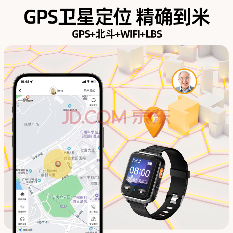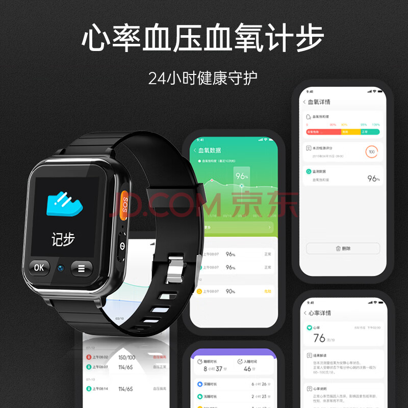 商品相册:爱牵挂老人视频电话手表 测心率血压血氧痴呆老人防走失跌倒报警插卡手环第