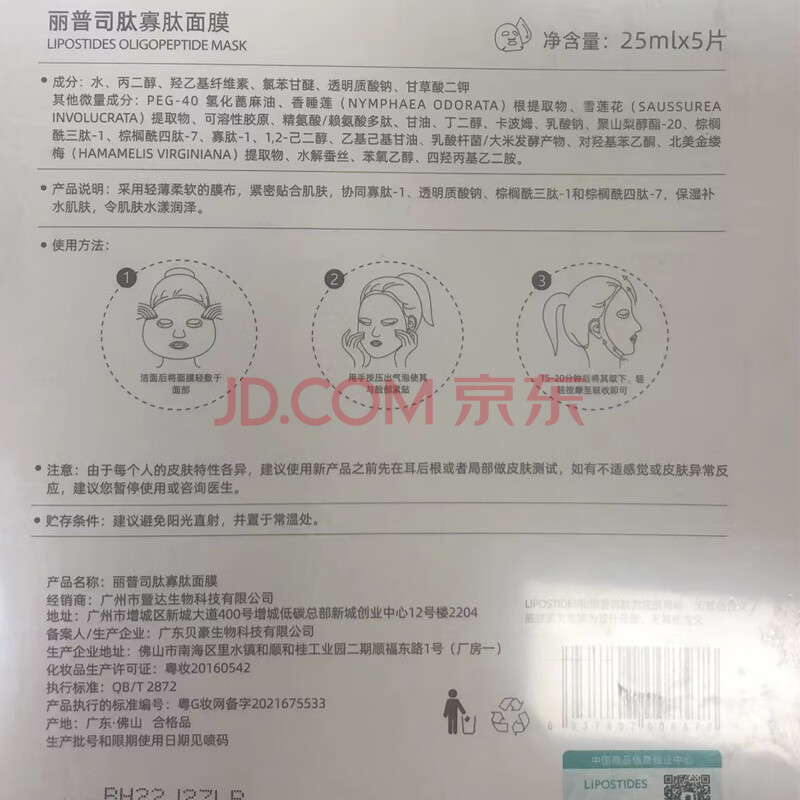 商品相册:丽普司肽(lipostides)寡肽精华面膜保湿补水保持肌肤水润5片/盒装节日礼物 送女友第