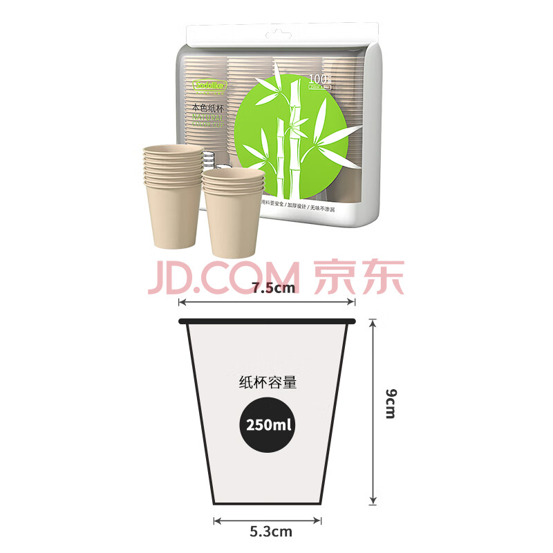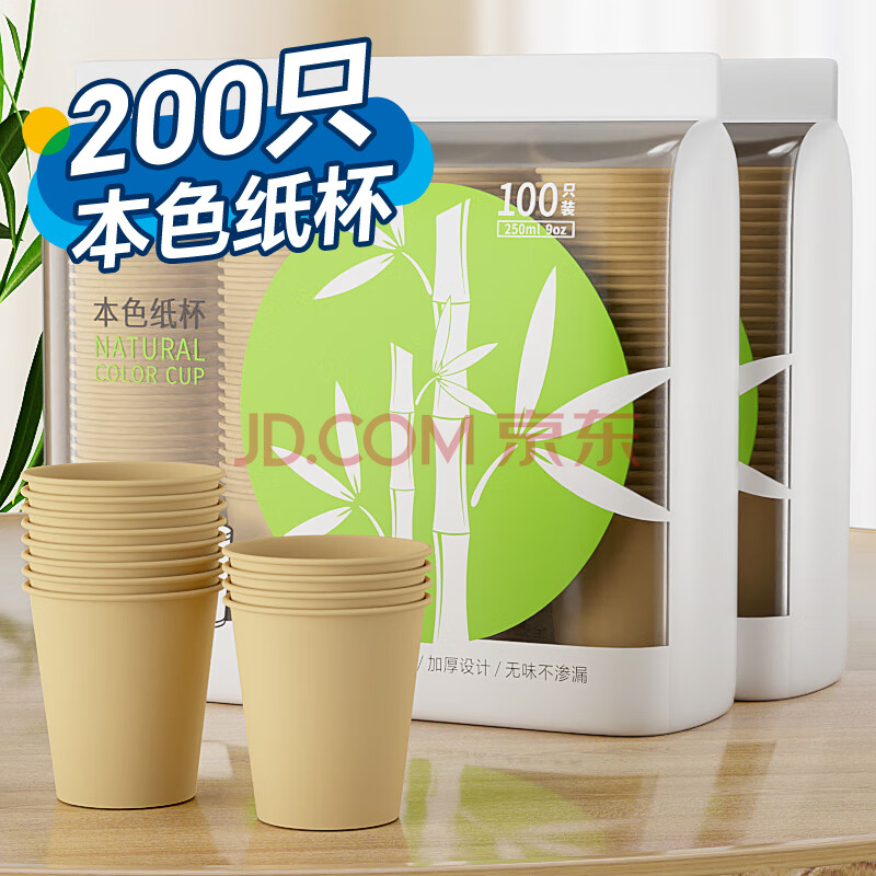 商品相册:Sodolike尚岛纸杯一次性杯子250ml加厚200只装竹浆本色无印刷9盎司办公第