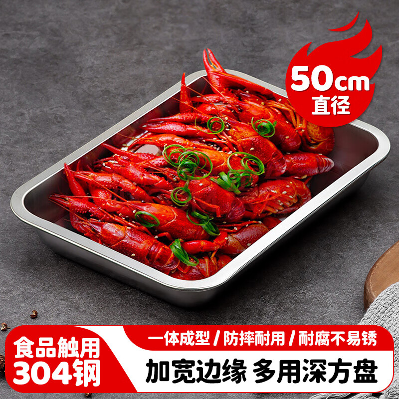 商品相册:美厨(MAXCOOK)304不锈钢盘子方盘 加深长方形餐盘烤鱼托盘家用50cm MCFT6593第1张/共9
