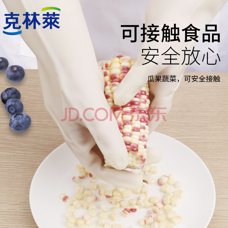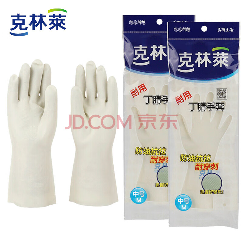 商品相册:克林莱丁腈手套2副装M码中号长款防滑耐穿刺清洁护肤洗碗家务手套第