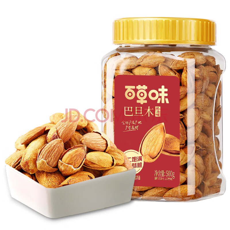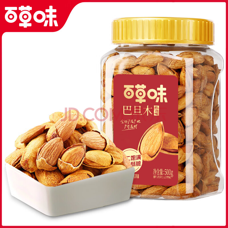 商品相册:百草味 罐装巴旦木500g 坚果零食扁桃仁手剥每日坚果送礼第