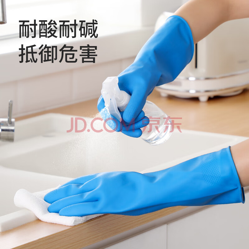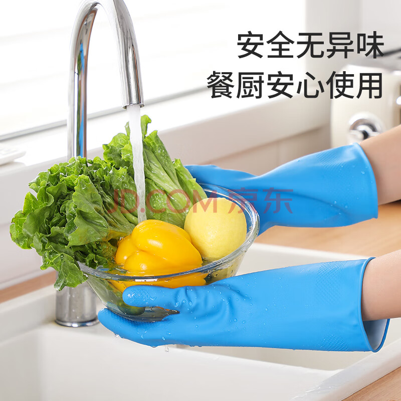 商品相册:美丽雅洗碗手套加长30cm中号1双乳胶洗衣家务防水耐用厨房清洁胶皮手套第