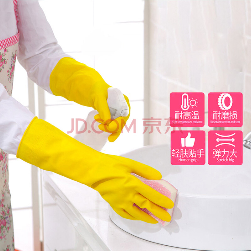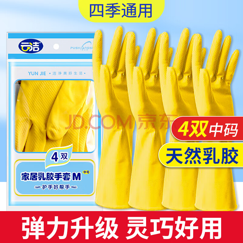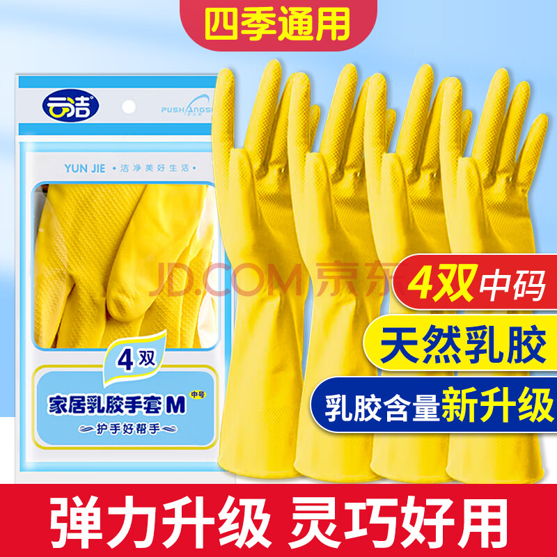 商品相册:云洁橡胶手套洗碗家务清洁厨房洗衣商用胶皮手套灵巧4双中号防水防滑 第