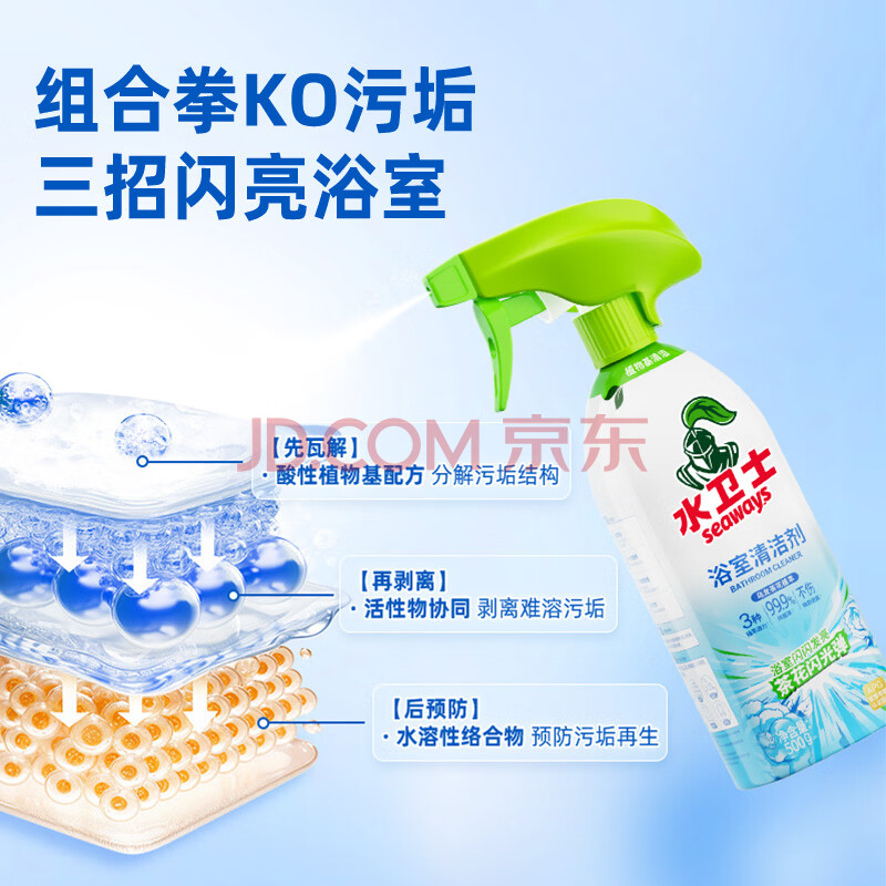 商品相册:水卫士浴室清洁剂玻璃地板瓷砖水龙头卫生间厕所马桶清洗剂500g第