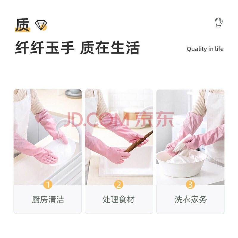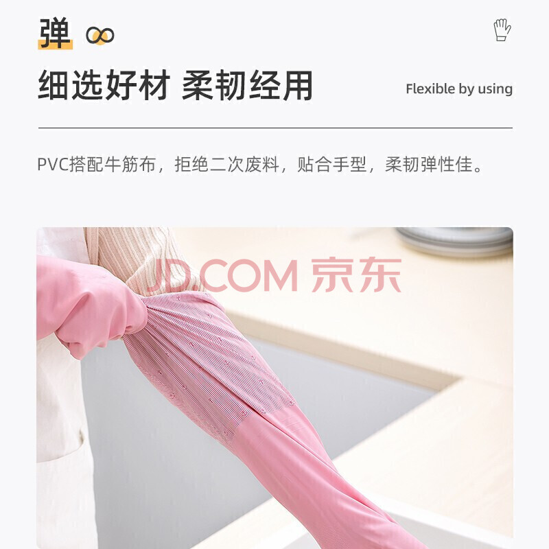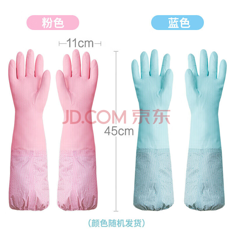 商品相册:茶花 加绒洗碗手套PVC2只均码加长加厚束口洗衣手套保暖袖套家务手套第