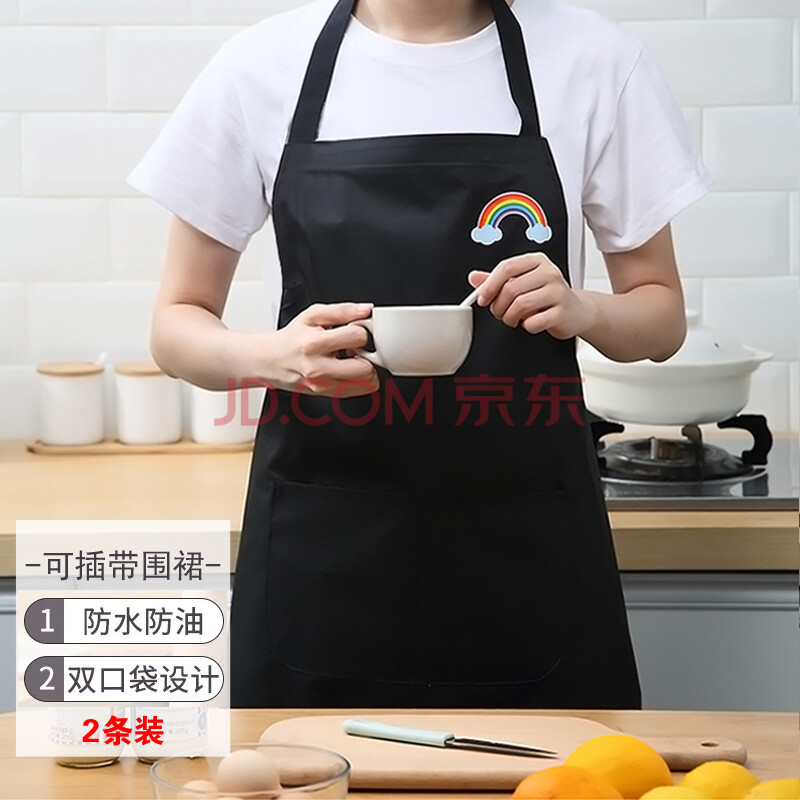 商品相册:迪普尔 围裙【2条装】女防水防油围裙巾围腰厨房餐厅工作服做饭无袖罩衣第
