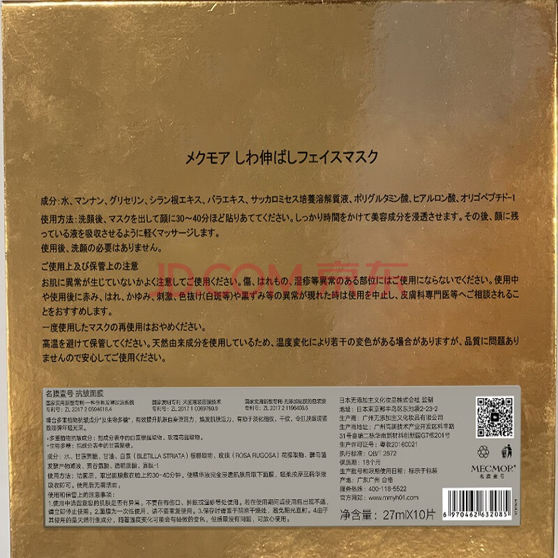 商品相册:名膜壹号(mecmor)抗皱美肤面膜白膜8片女补水保湿提亮肤色淡化细纹男女护肤品第